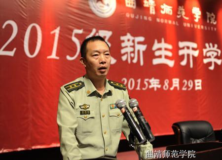 武警曲靖市支队参谋长封鸿卫中校做军训动员