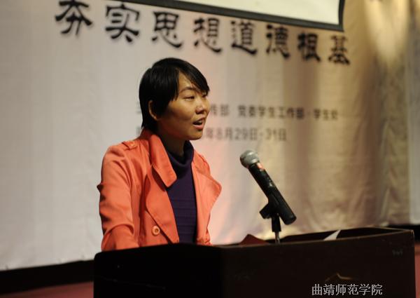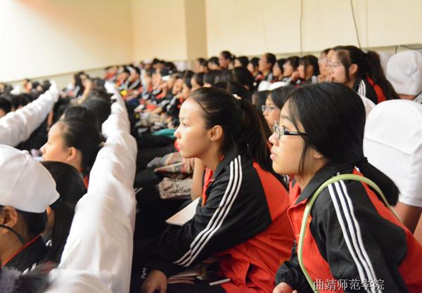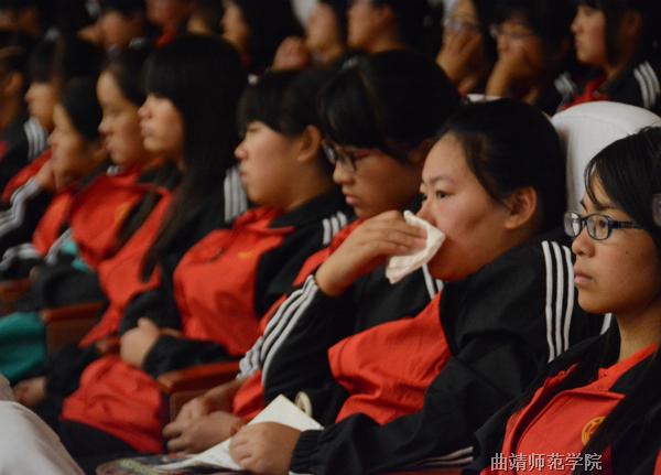 2006届毕业生、2008年北京奥运会火炬手、现为沾益县第四中学语文老师的蒋翠芳,讲述了自己在困境中的成长经历。她凭借坚强的意志,克服身体残疾带来的诸多困难,实现了梦想,取得了不平凡的成绩。她说,不要抱怨自己所失去的,而要关注你还拥有什么,上天虽苦我心智,却赐予了我智慧;虽夺走了我的右腿,却让我懂得了坚忍不拔。她勉励同学们,在大学期间学好专业知识,学会处理情感与生活上的问题,用坚强书写最美青春。