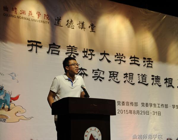 讲座在微电影《我在曲师成长》中拉开序幕,电影从学习、工作、生活三个方面展现了几位优秀毕业生在曲师校报记者站的成长点滴。随后,2015届毕业生、云南省2015年大学生年度人物赵德贵以朴实幽默的语言,从高中生活、大学生活和对大学生活的感受三个方面与同学们分享了青春路上的追梦故事。他告诉同学们,要不畏困难,勇于担当;在大学里通过读书和阅历的积累来充实自己的思想,踏实走好每一步,用勤奋与坚持去换取一个充实、精彩的大学生活。