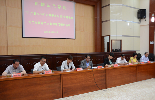 9月11日下午,学校举行“三严三实”和“忠诚干净担当”专题教育第二专题第二次集体学习研讨活动。党委书记李国疆主持,纪委书记徐显敏等领导作交流发言。