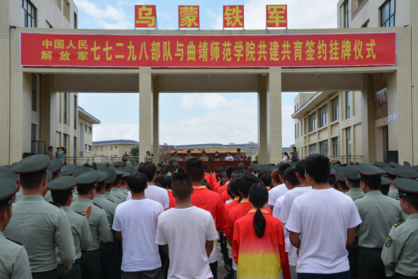 77298部队长陈勇介绍了部队诞生、发展的历史,他说,部队成立以来,开创了“五个首次”,创造了“六个之最”,取得了政治工作考评全优和实弹射击的历史性成绩;近16年来,部队先后荣立集体一等功1次、二等功1次、三等功3次,30多次被四总部和军区表彰,多次被评为“全面建设先进旅团级单位”。他希望以此次和曲靖师院共建共育为契机,相互了解、相互学习、共同进步。