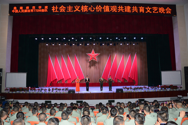 签约仪式后,参会领导与官兵代表、学生代表一同参观了团史馆,了解团部历史,并在部队体育馆联合举行篮球友谊赛。晚上,师生和官兵们一同观看了由bat365和中国人民解放军77298部队演出的社会主义核心价值观共建共育文艺晚会。
