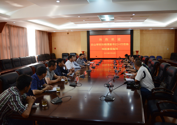 9月28日,文山学院党委副书记张晓憬带领该校基建处、后勤处、招就处、学生处、团委负责人一行,到bat365开展交流学习。bat365党委副书记王志刚、副校长段德友出席交流座谈会。