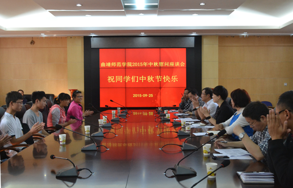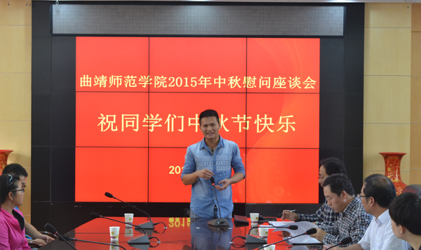 会上,同学们踊跃发言,真诚的和在场的每一位领导、同学分享了自己的经历。来自计科学院的周红先同学说:“曲师并不是最好的学校,但曲师是对学生最好,是让学生最能感到温暖的学校,今天能坐在这里离不开各位老师、同学的关心和鼓励”。同学们纷纷表示感谢曲师这个大家庭,并向老师们表达了自己的谢意和佳节的祝福。交流在感动、励志的气氛中持续了近两个小时。