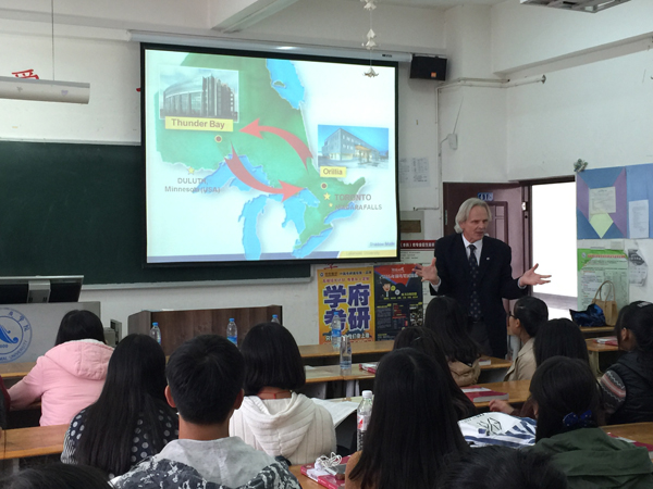 下午,Fedderson博士和周嘉欣女士分别到政法学院、教师教育学院与学生进行交流,向学生介绍加拿大概况和湖首大学的基本情况并回答了学生的问题。