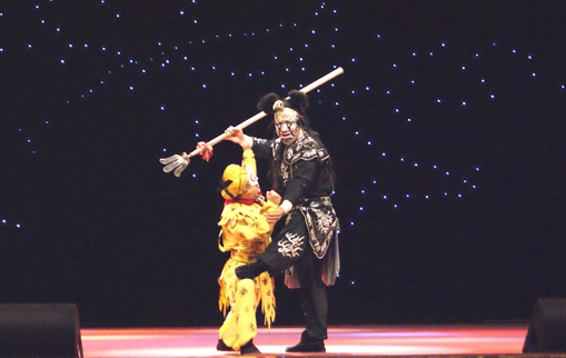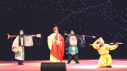 演出由欢快的彝族舞蹈《村里的年轻人》拉开序幕;现代京剧《沙家浜·智斗•军民鱼水情》展现了革命先辈斗智斗勇的英雄气概;新民乐《京韵乐舞》中长笛、古筝、琵琶、二胡合奏出的连绵琴音、悠悠笛声,恰似大珠小珠落玉盘,令同学们陶醉不已;武生铿锵有力的《精忠报国》演唱,将“我愿守土复开疆,堂堂中国要让四方来贺”演绎得气势恢宏、荡气回肠;传统京剧《铁弓缘•开茶馆》、《西游记•金钱豹》节选片段的精彩表演,更将演出气氛推向高潮,也将京剧的国粹魅力展现得淋漓尽致。