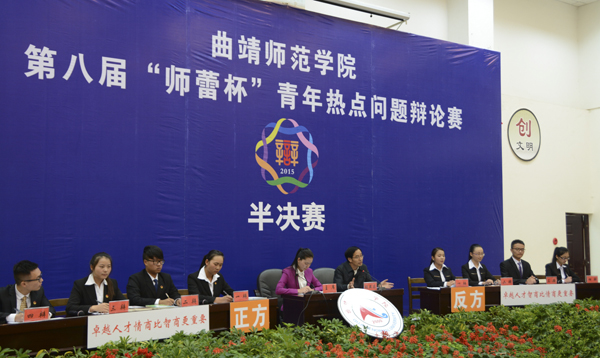 本次半决赛经过初赛、复赛后,美术、教师教育、化学化工、经济与管理学院顺利入围。四支辩论团队就“互联网+反腐”利弊孰大,卓越人才情商与智商谁更重要两个青年热点问题展开激烈辩论。正反双方逻辑清晰地即兴陈词、开篇立论;辩手们交替发言,聚焦社会热点、联系青年实际问题,恰当地引经据典,言简意赅地攻辩;双方自由辩论,巧妙运用鲜活事例,旁征博引,形象譬喻,妙语连珠;台下观众向正反双方踊跃提问,辩手们从容不迫、富有个性的回答赢得阵阵掌声,现场气氛高潮迭起。