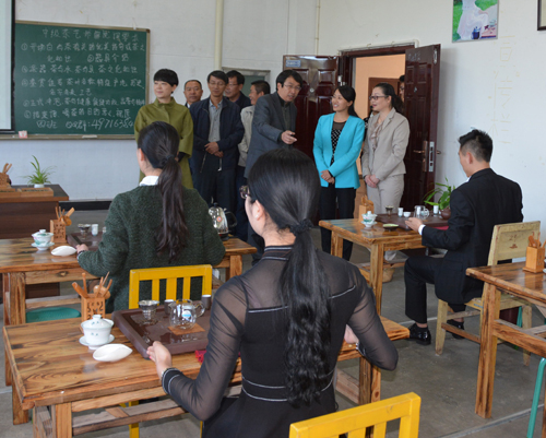 袁晓瑭一行调研大学生职业能力与综合素质培训基地,观看学生茶艺表演