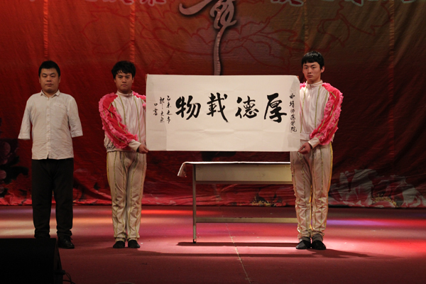 演出在聋哑舞蹈队表演的舞蹈《盛世欢歌中国梦》中拉开序幕。独舞《鹰之翼》形象地展示了雄鹰“志在四方”的英姿,让在场师生真切感受到了肢残舞蹈演员的“梦想之翼”;《天籁之爱》、《年年有余》等多支聋人舞蹈队带来的精彩舞蹈,舞出了生命之美,生动地诠释了聋哑舞者对舞蹈与生命的热爱;盲人陈少勤用普通火柴盒演奏的《鸟语的早晨》,仿佛将大家带入到安静唯美的大自然;当《从头再来》、《你是我的眼》等多首励志歌曲响起时,同学们纷纷掏出手机为盲人演唱家周厚国、许燕“照明”,将现场气氛推向了高潮;刘勇刚、李凤带来的《力量》、《调吊》杂技表演,更让同学们深深感受到了人体的力量及柔韧的无限魅力;无臂画家郑博现场挥毫用嘴创作了“厚德载物”书法作品,让人赞叹;最后,在经典舞蹈《千手观音》壮丽华美的意境中,本场演出落下帷幕。