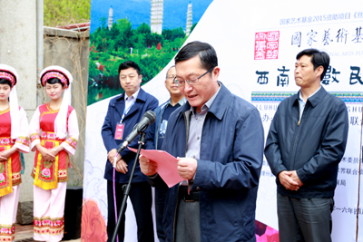 李小兵在致辞中说:《丝路华彩——西南少数民族水彩艺术展》巡展来到大理,是国家艺术基金资助项目展览首次在大理举办。展览为我们共同感受西南少数民族丰富多彩的文化面貌,共同关注“一带一路”的过去、现在和未来,为推动多远文化的碰撞、交融搭建了一个广阔的舞台,为共同推动区域艺术发展、服务地方文化建设搭建了良好的平台,同时为加强校际间的交流与合作搭建了友谊的桥梁。