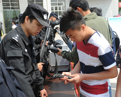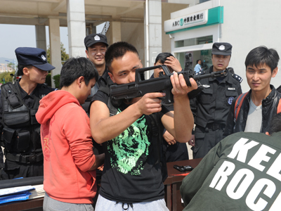 据武警岳志坚同志介绍,此次活动主要是为了宣讲自2016年1月1日起实施的《中华人民共和国反恐怖主义法》,让同学们认识军用反恐装备,教同学们如何识别恐怖主义,以提高同学们的反恐意识。