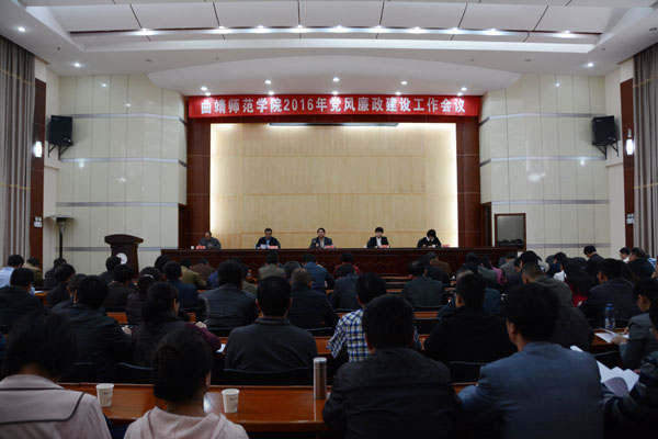 会上,党委书记李国疆、校长浦虹分别与美术学院、资产管理处负责人签订了《2016年党风廉政建设责任书》。在家的校领导、全体处级干部,学校纪委委员、各党总支(直属党支部)纪检委员,管理、教辅部门的科级干部共190余人参加了会议。