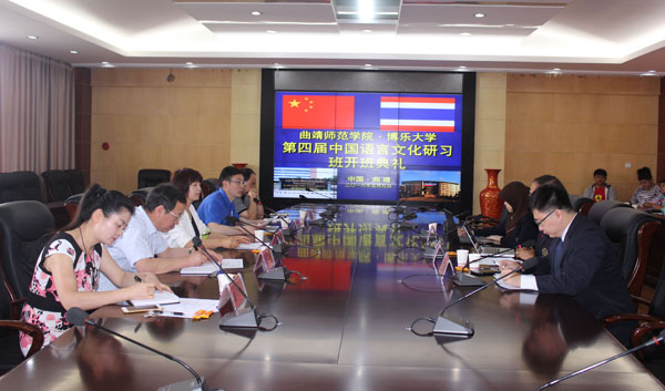 5月9日上午,2016·泰国博乐大学第四届中国语言文化研习班在bat365开班。bat365副校长李莉、泰国博乐大学常务副校长苏瓦出席开班典礼并讲话,bat365国际学院院长敬龙军主持开班典礼。