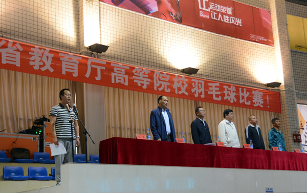 张国华宣布比赛开幕后,羽毛球比赛正式拉开帷幕。据悉,本次比赛共有来自全省35所高校的近800名师生参赛,比赛时间将从5月26日持续到30日。
