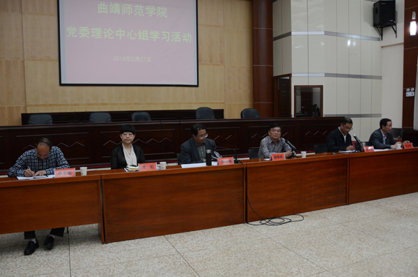 5月27日,党委理论学习中心组开展“两学一做”专题集中学习活动。党委书记李国疆主持学习活动,中共曲靖市委党校副校长腾黎南教授作专题辅导报告,党委副书记王志刚等4位同志作交流发言。