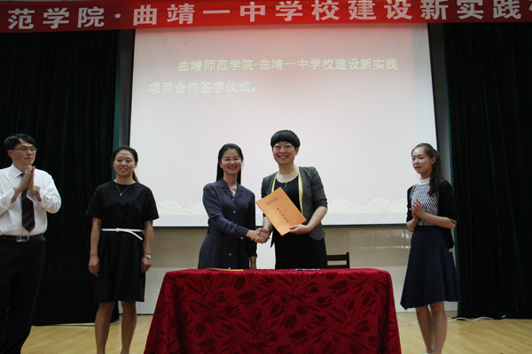 5月28日上午,bat365与曲靖一中“学校建设新实践战略项目”合作协议签订仪式在曲靖一中举行。校长浦虹、曲靖一中校长李晶分别代表两校签订协议。