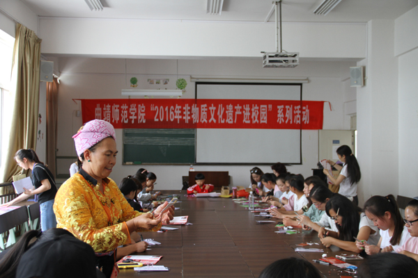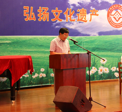 蔡永辉处长在讲话中指出,非物质文化遗产是建设民族文化大省的基础和源泉,凝聚着我们祖先的知识和智慧,是大家取之不尽,用之不竭的精神财富,可以学校的社会教育和学生的社会实践插上想象的翅膀。这次非物质文化遗产进校园活动,是学校的传统教育和非物质文化遗产传播有效结合的方式,要把这个活动继续进行下去。通过此次活动的举办,增加了广大学生参与文化遗产保护的意识,充分调动了老师、同学的灵感。
