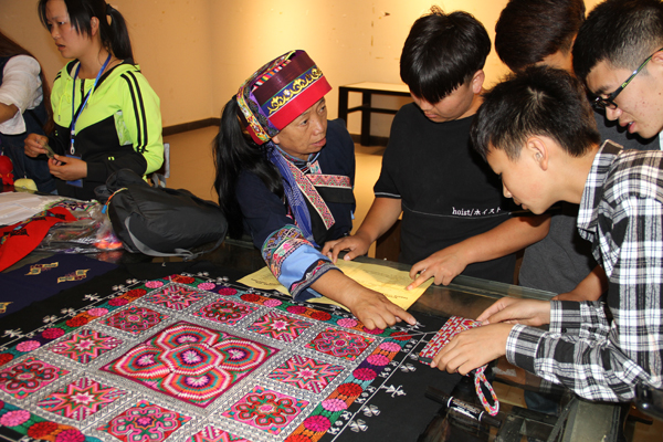 省级非遗项目“彝族撒尼刺绣”代表性传承人毕跃英指导学生刺绣