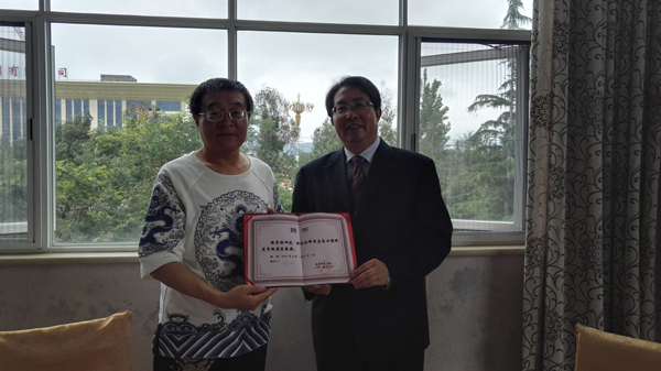 李国疆向洪峰颁发客座教授聘书