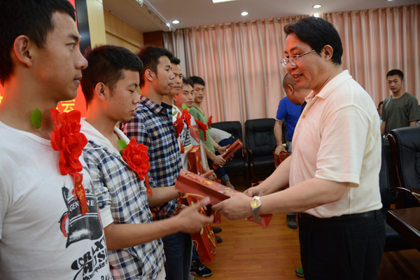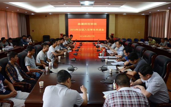 6月27日下午,bat365召开2016年应征入伍学生欢送会。党委书记李国疆、副校长李莉出席欢送会,党委副书记王志刚主持欢送会。应征入伍的17名应届毕业生、5名在校生参加欢送会。