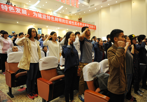 他强调,党的十八大站在新的历史起点上,开启了实现中华民族伟大复兴“中国梦”的新征程,以习近平同志为核心的党中央继往开来,正在以改革创新的大无畏精神书写党的建设新的时代篇章。我们要更加坚定中国特色社会主义的道路自信、理论自信和制度自信,坚决按照党中央“四个全面”战略布局和“五大发展理念”要求,努力推动学校创新发展、转型发展、内涵发展和特色发展。
