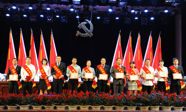 人文学院广告学党支部等8个先进基层党组织、何艳丽等41名教师优秀共产党员、张珍等5名学生优秀共产党员、龙明礼等12名优秀党务工作者受表彰。校党委班子成员为受表彰的先进集体和个人代表颁奖。何艳丽代表优秀共产党员、刘兴全代表先进基层党组织负责人分别发言。