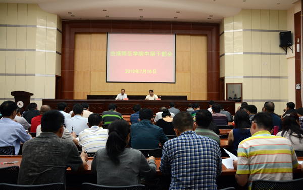 为进一步明确下一步工作重点,安排部署“十三五”时期重点工作,7月16日,学校召开中层干部会,党委书记李国疆作题为《深入理解新发展理念 确保如期实现“十三五”目标》的专题报告,党委副书记王志刚主持会议,全体在家校领导、全校中层干部参加会议。