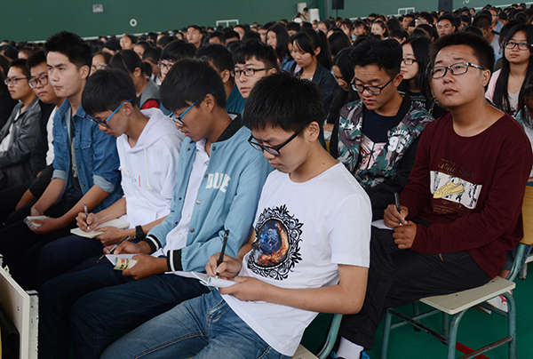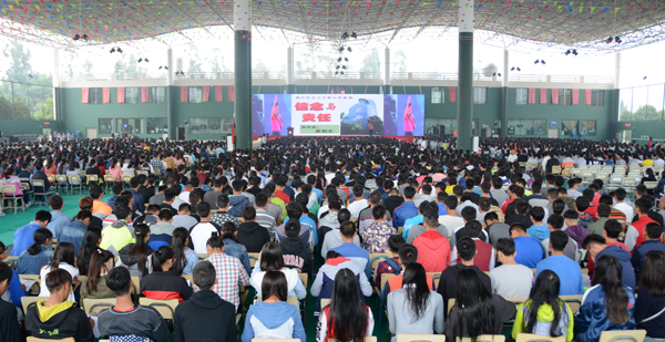 2016级3800余名新生在网球馆聆听了本次演讲。