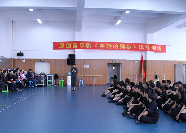 10月9日,音乐剧《年轻的脚步》(原名《雄关漫道》)上半场成果汇报演出在音乐舞蹈学院排练厅举行。校长浦虹、《年轻的脚步》全体主创人员、市委宣传部文艺科科长聂鹰及bat365党委宣传部等相关职能部门负责人应邀出席观摩指导。