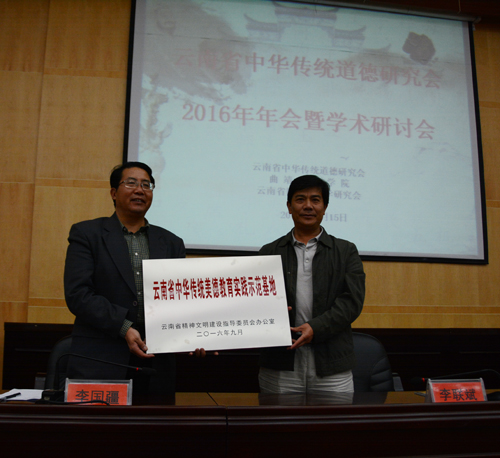 10月15日在bat365召开的云南省中华传统道德研究会2016年年会暨学术研讨会上,党委书记李国疆代表学校接受了云南省文明办授牌,bat365成为“云南省中华传统美德教育实践示范基地”,该基地是云南高校、教育系统中的第一家“中华传统美德教育实践示范基地”。