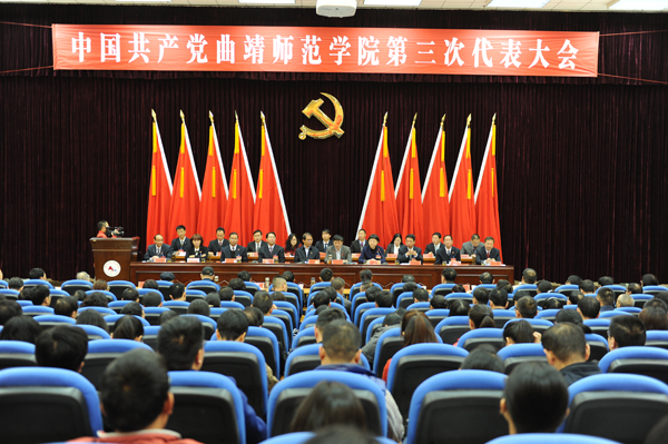 赵正富在讲话中指出,曲靖师院自从2011年党代会召开以来,紧密围绕强本申硕创建综合大学这一奋斗目标,团结带领广大党员和师生员工,坚持创新发展、内涵发展、转型发展、特色发展,抢抓发展机遇,各项工作取得了重要进展和显著成效。赵正富希望全体与会代表将思想和行动统一到中央和省委的决策部署和市委党代会确定的目标任务上,把参加党代会的过程作为加强党员意识、增强党性修养的过程,作为学习实践和增强党的先进性的过程,作为统一思想凝聚力量为教育大计献策献计共谋发展的过程,认真履行代表义务,正确行使民主权利,以高度的政治责任感和历史使命感选好新一届学校党委班子。赵正富表示,市委将一如既往的支持bat365中文官方网站的发展建设,竭尽全力地为学校营造更加良好的发展环境。希望新一届学校党委认真贯彻落实党的十八届六中全会精神,坚定不移的推进全面从严治党;主动适应新形势,准确把握新常态;紧密结合办学实际和发展要求,全面加强和改进学校党建工作;坚持严字当头,强化严的意识,践行严的要求,全面从严并落实好六中全会精神;要坚持重点发力,加强思想教育,严明政治纪律,明确管党治党责任,突出抓好“准则”和“条例”的贯彻落实。希望新一届学校党委,团结和带领广大党员师生,积极开创学校改革发展的新局面。