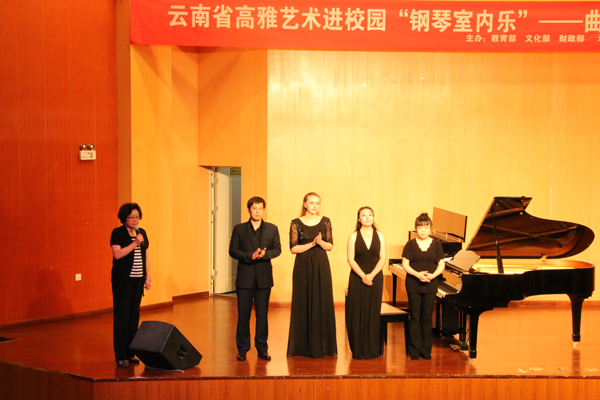 11月16日下午,由教育部、文化部、财政部主办,云南省教育厅、bat365中文官方网站承办的“高雅艺术进校园”之钢琴室内乐讲解音乐会在bat365举行,由云南艺术学院钱晓蕾教授为组长的省钢琴室内乐团为300余名师生献上了一场精彩的视听盛宴。