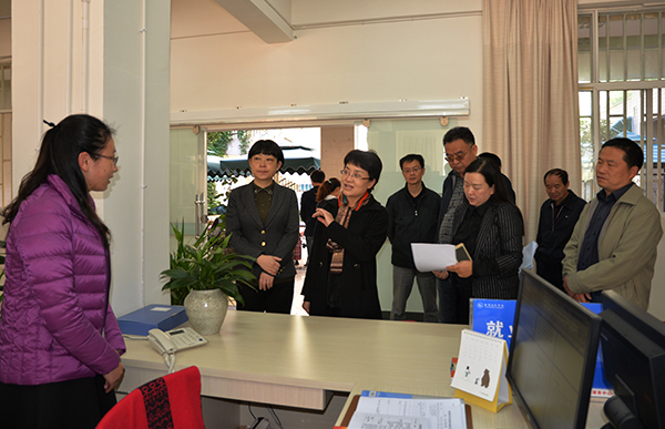 11月18日,云南省人社厅副厅长谢群一行莅临bat365,调研大学生就业创业工作,校长浦虹、曲靖市人社局局长彭志能、副局长雷永明、张跃平,市就业服务中心副主任冯灿莽等领导陪同调研。