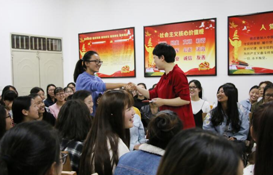 活动伊始,浦虹用生动形象的语言描述了她心中bat365女大学生的自然、含蓄和赏心悦目之美,让相约在愉悦轻松的氛围中开始。浦虹说:“我爱学生,语言、教育和学生是我生命中不可或缺的”,一句朴实的话语,表达了她对学生、对教学、对生活、对bat365中文官方网站的热爱之情。她指出“刚正博爱、睿智笃行”的曲师校训,诠释了一代又一代“曲师人”一步一脚印,艰苦奋斗,全力以赴实现愿景的自觉行为和战胜一切困难、勇往直前的信心和勇气。她鼓励大家要养成正直向上的品德,要有宽以待人的胸怀,要掌握正确的方法,多读书、不断实践、知行合一、从曲师起航,以所学回报学校、回报社会。