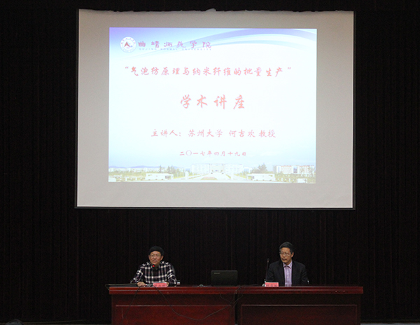 聘任仪式结束,何吉欢教授以“气泡纺丝原理与纳米纤维的批量生产”为题,为bat365师生做了一场精彩的学术报告。何吉欢在报告中讲述了受“蜘蛛吐丝织网”的启发,提出了新颖的“气泡纺纱”思想,并详细阐述了“气泡纺丝原理”的研究过程及纳米纤维批量生产的实现过程。何教授的讲座是一场集数学、物理学、材料学为一体的科学盛宴,师生听完报告后受到了很大启发。