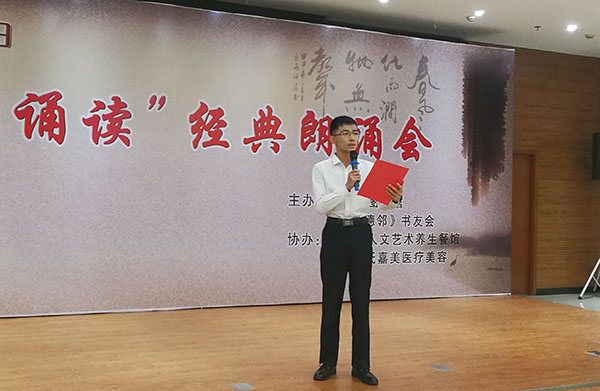 为纪念4·23世界读书日,4月23日晚,由曲靖市图书馆主办的曲靖市“德邻·诵读”经典朗诵会在曲靖市文体公园举办,市文化体育局党委书记、局长纪爱华出席朗诵会,并朗诵了《将进酒》,诠释李白的情怀。
