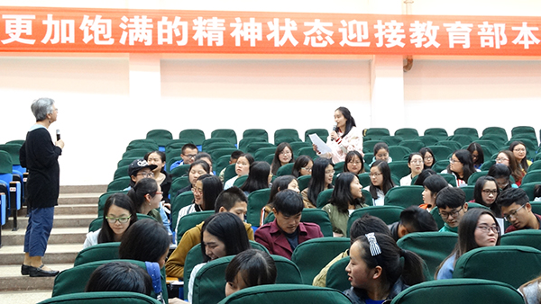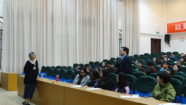 讲座最后,Pawan教授和随行的博士生EmmaFisher还与在座的广大师生展开了热烈的讨论和交流,对本研究的动机、在中国大班课堂的可行性、对教师职业素养的要求、实时教学、如何本土化等进行了热烈互动。