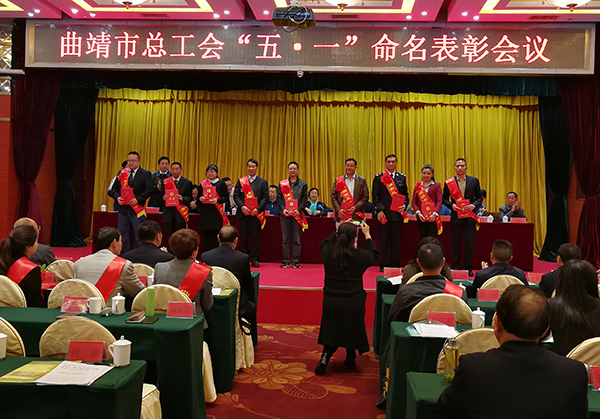 4月28日,曲靖市总工会召开“五一”命名表彰会议,表彰了一批为全市经济社会发展作出贡献的各类先进集体、先进个人和在曲靖市首届 “最美劳动画面 (场景) ”摄影及绘画大赛中获奖作品。市委常委、市委宣传部部长和亚宁,市人大副主任、市总工会主席李桂珍等领导出席会议。