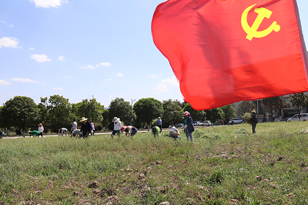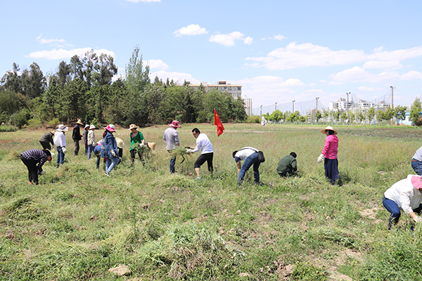 为进一步助力学校审核评估工作,给广大师生提供优美、干净的学习生活环境,后勤服务中心组织党员、入党积极分子开展义务劳动,清除学生会堂东面绿化区域杂草,为打造波斯菊校园观赏区做好前期准备工作。活动当天虽然气温很高,但同志们都干劲十足,努力开展除杂活动。