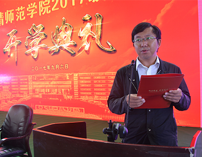 教师代表王洪、老生代表张佳、新生代表李阳先后在开学典礼上发言。王洪希望同学们修身立德,学会做人;修学致知,学会学习;修为笃行,学会做事。张佳与同学们分享了自己的大学生活感悟。李阳号召大家把梦想的种子植入曲师的肥沃土壤,用汗水与拼搏铸就精彩人生。