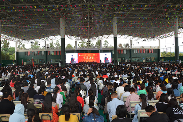 全体在家校领导,各学院、各部门负责人及教师、2017级全体新生4000余人参加开学典礼。