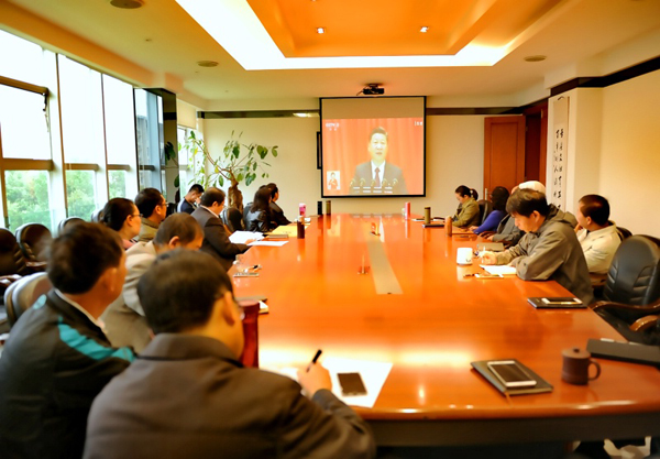 学校党委班子成员与部分教职工集中收看党的十九大开幕式盛况
