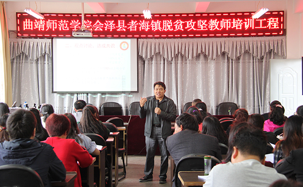 实施教师培训工程,阻断贫困代际传递。从2016年开始,学校启动了为期四年、共计8期的“会泽县者海镇脱贫攻坚教师培训工程”,至2019年底结束,按照认识年、基础年、发展年、完善年四年递进的方式进行,采取“送教到镇”的形式开展,着力解决各学段学科教学中存在的教学目标不够清晰、教学内容不够严谨、教学方法相对单一、教学效果存在差距等实际问题。截至2017年7月,已投入资金68万元举办了3期培训班,来自全县18个乡(镇、街道)的中小学(幼儿园)教师2721人次完成培训任务。前3期培训主要呈现三大特点:一是整合了校内外优质教学资源,组建了由校内学科专家担任首席专家,来自省、市、县级“名师工作室”、“国培计划”骨干成员、校本培训示范校等组成的138人次专家团队,负责方案编制、现场授课、答疑解惑等相关工作;二是大学科立足者海镇,小学科辐射会泽县78%的乡(镇、街道),扩大了全县教育资源的受益面;三是开设教育管理干部培训班,对者海镇101名中小学管理者进行集中培训,将全员培训与重点培训紧密结合,努力实现对干部队伍的全员覆盖、全员提升。
