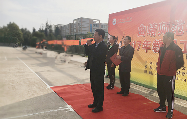 党委副书记陆选荣宣布2017年教职工篮球赛开幕