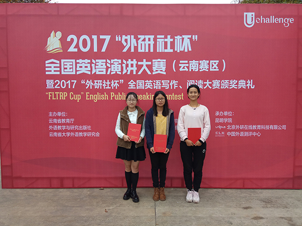 近日,由外语教学与研究出版社、教育部高等学校大学外语教学指导委员会、教育部高等学校英语专业教学指导委员会、云南省教育厅联合主办的2017年“外研社杯”全国英语演讲、写作和阅读大赛云南赛区决赛分别在云南财经大学和昆明学院举行。bat365人文学院2016级学生陈冠妃、外国语学院2016级学生王欣、外国语学院2015级学生蔡宇晨分别在写作、阅读、演讲大赛云南赛区决赛中荣获二等奖。