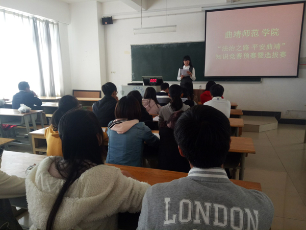 为深入贯彻落实党的十九大精神,深化依法治国实践,弘扬宪法精神,提高青年学生法制意识,深入推进法治曲靖、平安曲靖创建工作,11月8日,学校开展“法治之路 平安曲靖”知识竞赛预赛暨选拔赛。