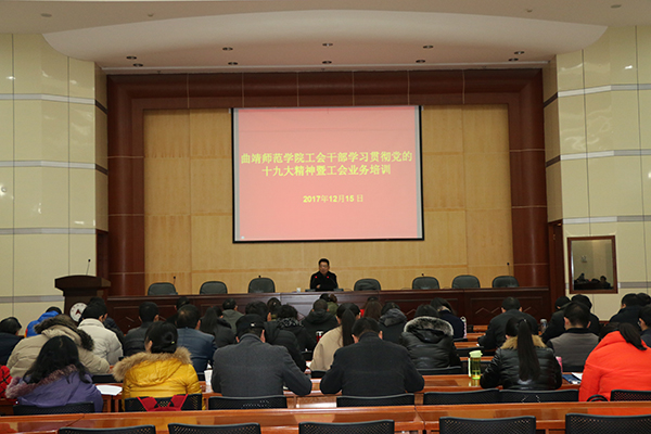 为深入学习贯彻党的十九大精神及中央、省、市党的群团工作会议精神,进一步增强工会组织的政治性、先进性、群众性,提高工会干部服务群众的意识和围绕中心开展群众工作的能力,12月15日,学校开展工会干部培训。党委副书记、校工会主席陆选荣作专题培训。校工会委员、经费审查委员、女职工委员和各二级工会委员等全体专兼工会干部共70余人参加培训。