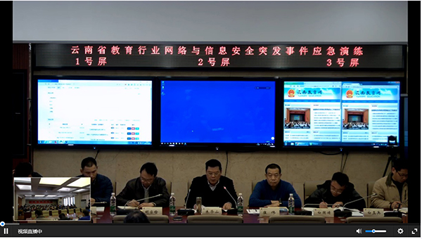 12月19日—21日,按照省教育厅的统一部署和安排,bat365网络安全与信息化工作领导小组办公室参加了全省教育行业网络与信息安全突发事件应急演练活动。演练模拟在工作中发生有害程序、网络攻击、信息破坏、网络舆情及其他网络与信息安全突发事件,检验参演单位在安全突发事件发生后的响应能力、处置能力和可持续防控能力。演练主会场设在省教育厅,省教育厅副厅长朱华山出席并作重要讲话,演练过程通过网络直播。学校信息与教育技术中心全体技术人员在学校会场参加演练。