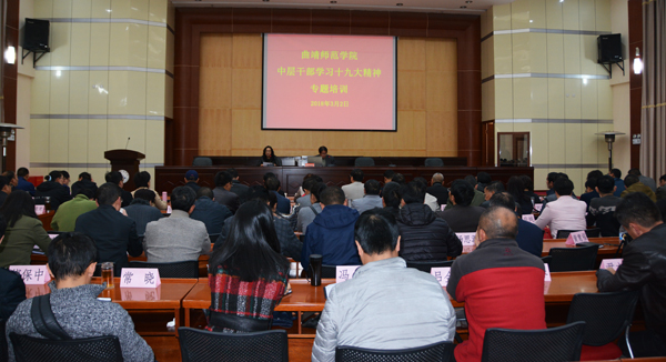 为深入贯彻落实党的十九大精神,提高干部综合素质和岗位履职能力,推动学校各项事业健康发展,3月1日至2日,学校开展中层干部专题教育培训。党委书记李国疆、校长浦虹、纪委书记徐显敏作专题培训。在家校领导、全体中层干部参加培训,培训会由党委委员、党委组织部长陈燕主持。
