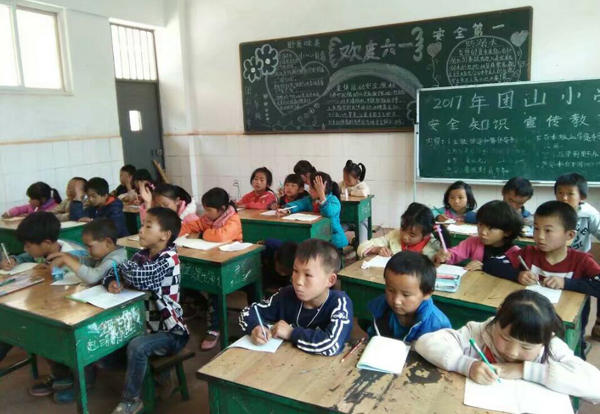 团山小学的孩子们正在上课